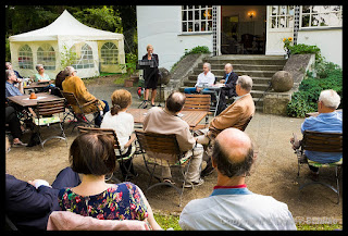 Dr. Werner Hecht, Brechtbiograph, Theater- und Literaturwissenschaftler, liest mit Sabine Frost bei der Ausstellungseröffnung "DIE LEGENDE von Bertolt Brechts LANDHAUS in Utting." - Neue Ausstellung im Brecht-Weigel-Haus - 16.07.2016